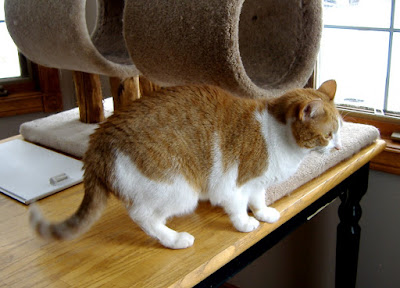 Now that Summer has left the building, Farah can take up her favorite position, on the bags in the upstairs hallway: